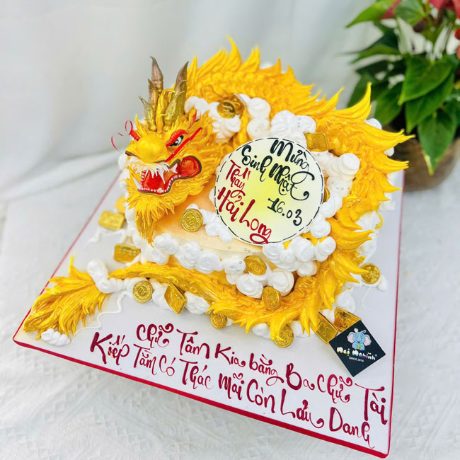 Bánh kem ssinh nhật tạo hình 3d con rồng tuổi thìn mạ vàng đẹp độc đáo