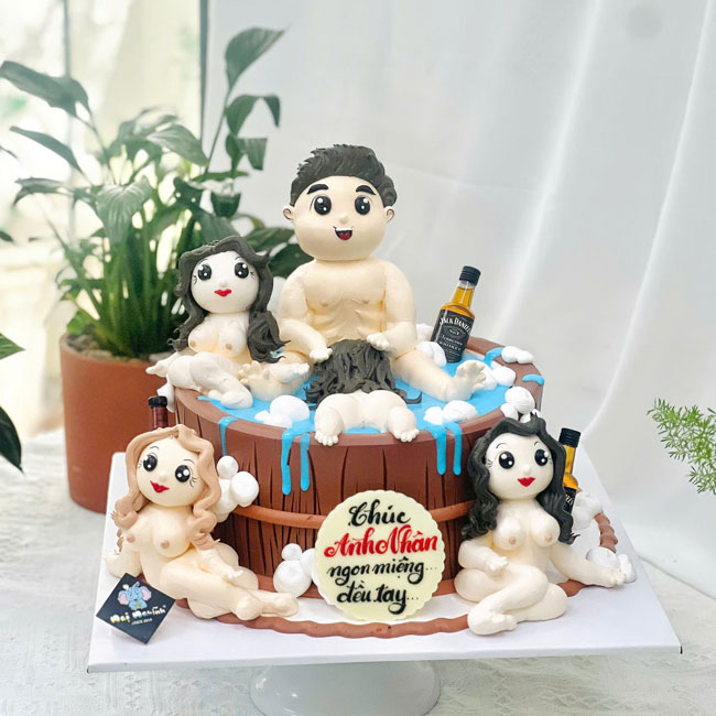 Bánh sinh nhật 18+ tạo hình 3d trai gái tắm bồn ngộ nghĩnh độc đáo