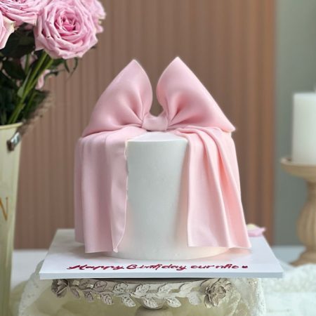 Bánh sinh nhật Fondant tạo hình chiếc nơ hồng siêu to đẹp độc đáo