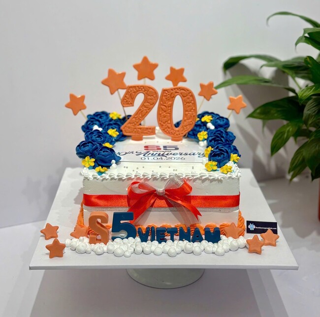Bánh sinh nhật in hình ăn được bắt hoa xanh mừng sự kiện công ty