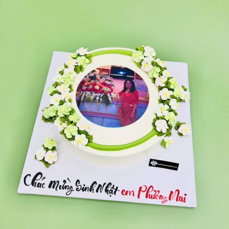 Bánh sinh nhật in hình ăn được trang trí hoa xinh xắn đẹp mắt tặng nữ