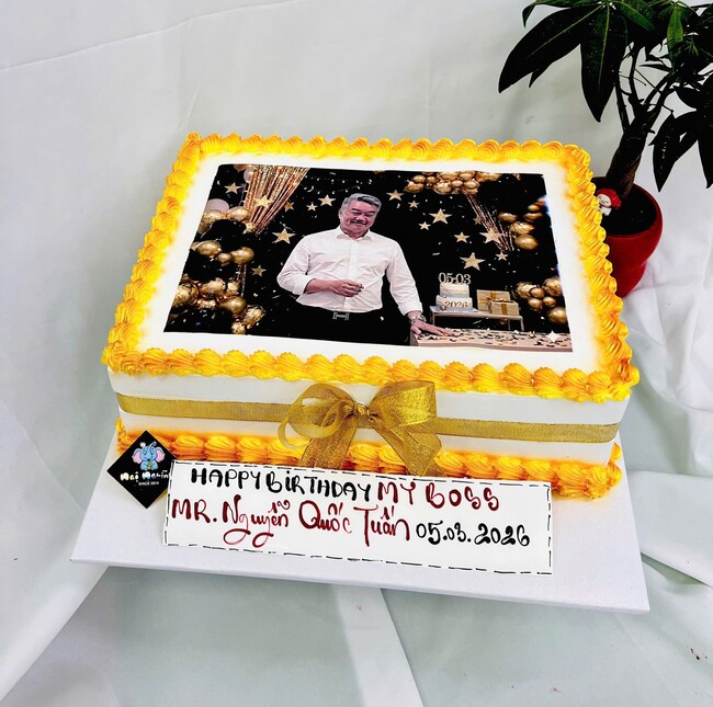 Bánh sinh nhật in hình ăn được viền kem vàng đẹp độc đáo tặng boss