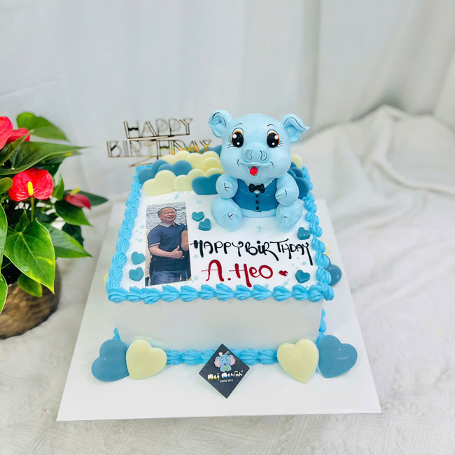 Bánh sinh nhật in hình bắt heo nhỏ tuổi hợi siêu đáng yêu tặng nam
