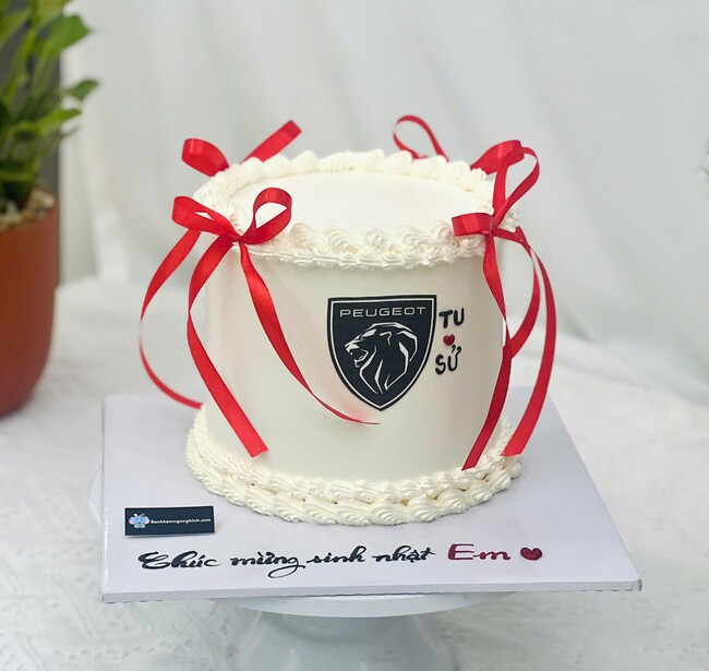 Bánh sinh nhật in hình logo xe peugeot cột nơ độc đáo tặng nữ