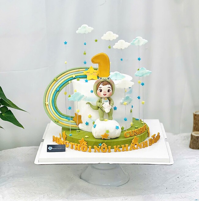Bánh sinh nhật tạo hình 3d bé khủng long dễ thương thôi nôi bé trai