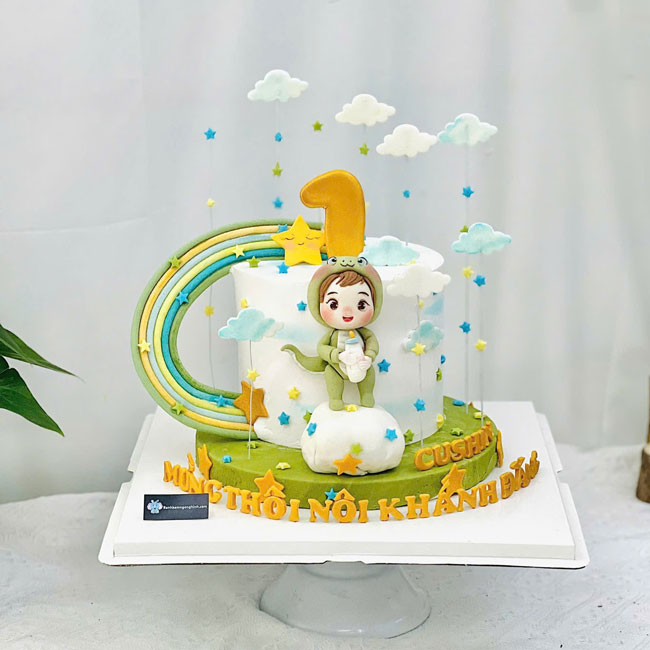Bánh sinh nhật tạo hình 3d bé rồng siêu dễ thương mừng thôi nôi bé gái