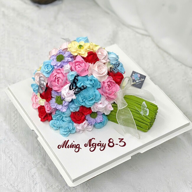 Bánh sinh nhật tạo hình 3d bó hoa đủ màu sắc xinh xắn tặng nữ ngày 8/3