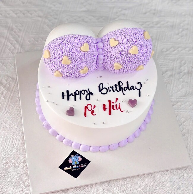 Bánh sinh nhật tạo hình 3d cặp vú và áo lót màu tím dễ thương tặng nữ