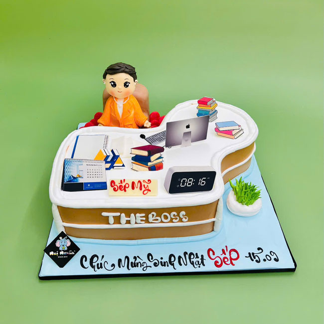 Bánh sinh nhật tạo hình 3d chiếc bàn giám đốc và người sếp độc đáo