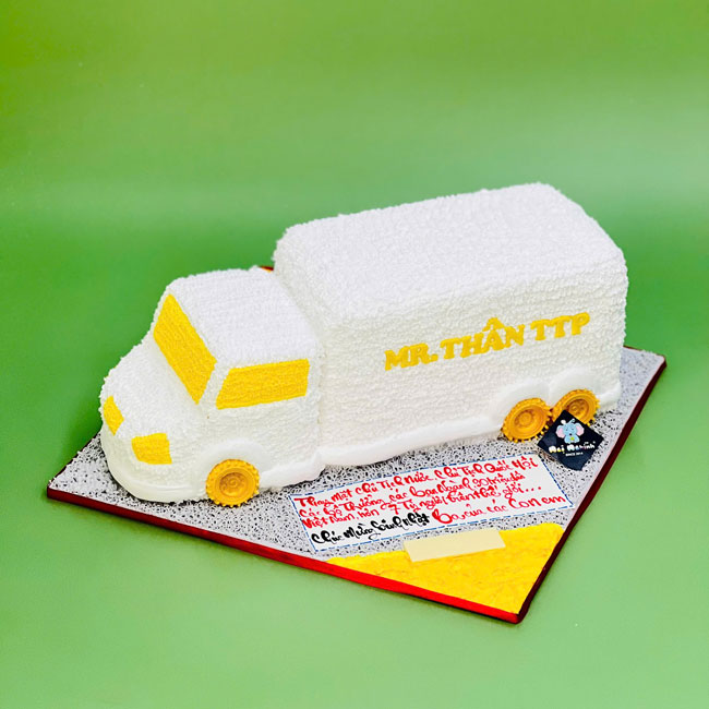 Bánh sinh nhật tạo hình 3d chiếc xe tải màu trắng siêu dễ thương