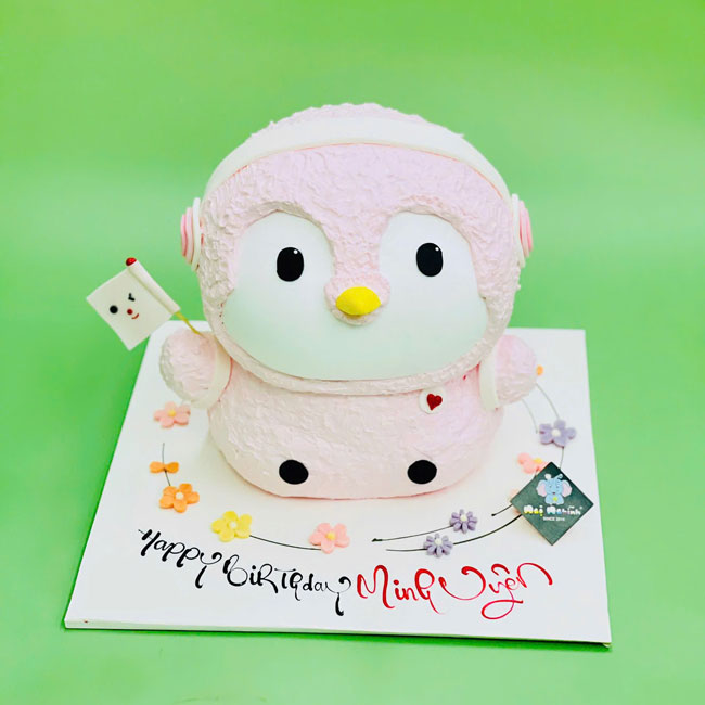 Bánh sinh nhật tạo hình 3d chú chim cánh cụt hồng siêu đáng yêu