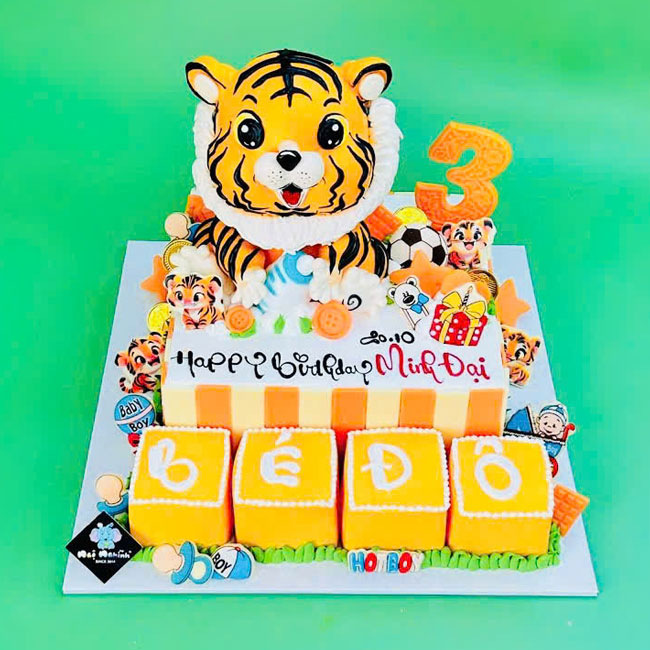 Bánh sinh nhật tạo hình 3d con cọp tuổi dần và bánh nhỏ siêu dễ thương