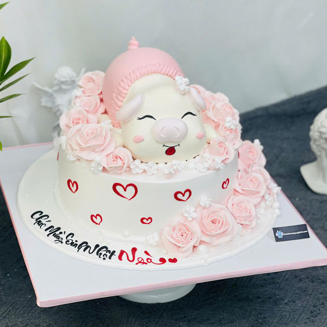 Bánh sinh nhật tạo hình 3d con heo tuổi hợi màu hồng siêu đáng yêu