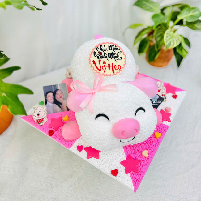 Bánh sinh nhật tạo hình 3d con heo tuổi hợi màu trắng đáng yêu tặng vợ