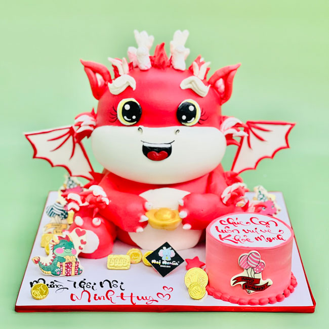 Bánh sinh nhật tạo hình 3d con rồng tuổi thìn màu đỏ mừng thôi nôi bé