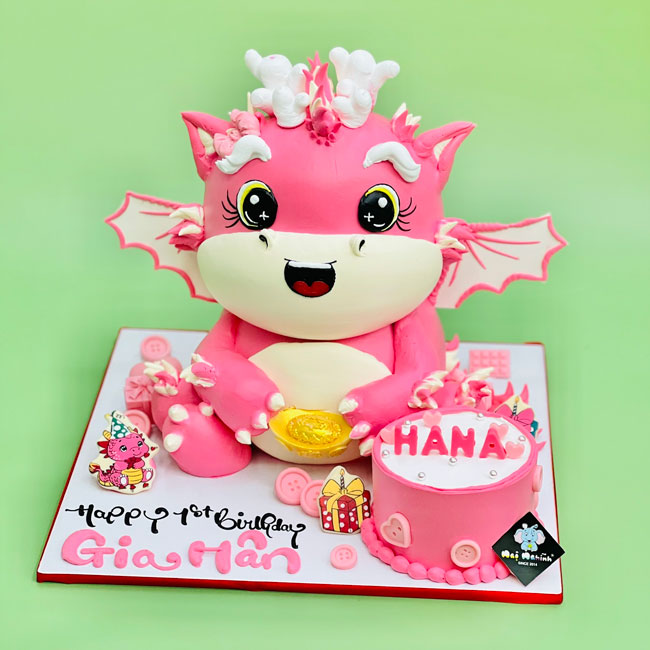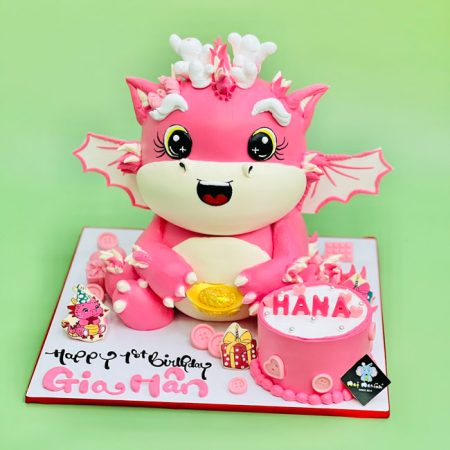 Bánh sinh nhật tạo hình 3d con rồng tuổi thìn màu hồng cực đáng yêu