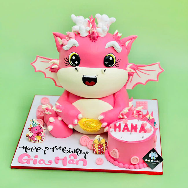 Bánh sinh nhật tạo hình 3d con rồng tuổi thìn màu hồng tặng bé gái