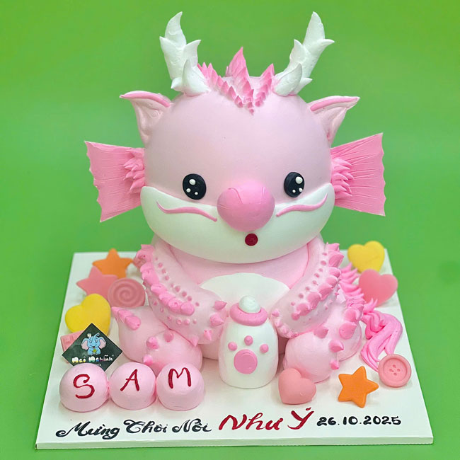 Bánh sinh nhật tạo hình 3d con rồng tuổi thìn màu hồng xinh xắn đáng yêu