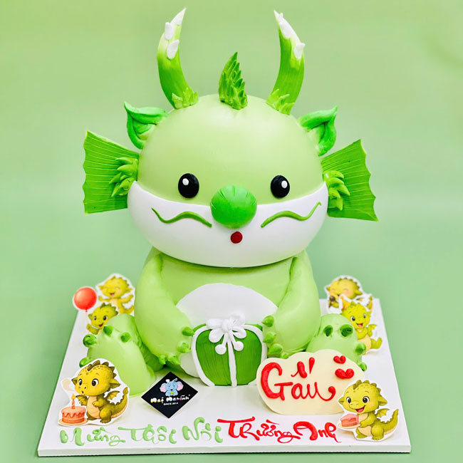 Bánh sinh nhật tạo hình 3d con rồng tuổi thìn màu xanh lá đáng yêu