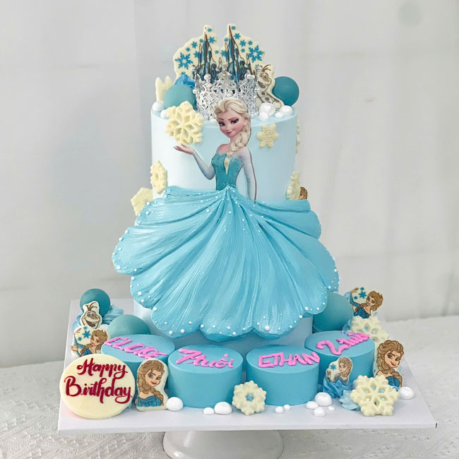 Bánh sinh nhật tạo hình 3d công chúa elsa và bánh nhỏ đáng yêu