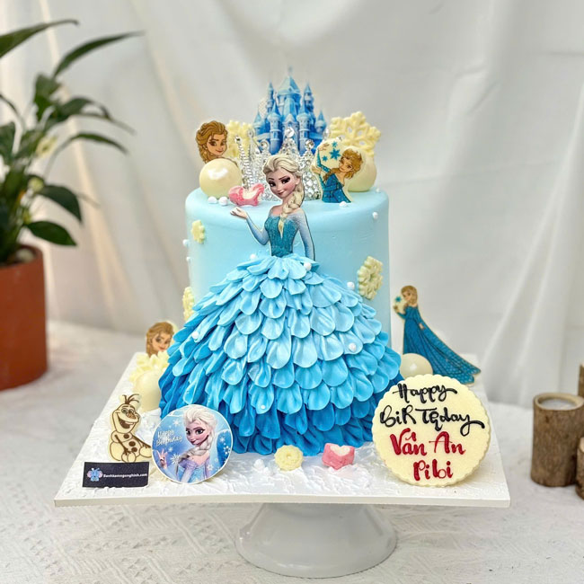 Bánh sinh nhật tạo hình 3d công chúa elsa xanh đáng yêu tặng bé gái