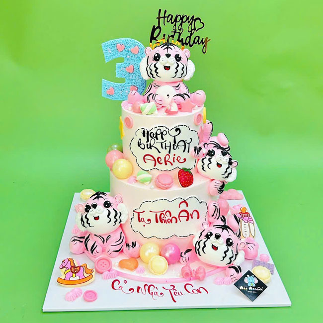Bánh sinh nhật tạo hình 3d đàn cọp tuổi dần 2 tầng đẹp mắt tặng bé trai