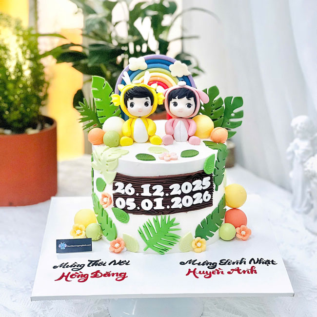 Bánh sinh nhật tạo hình 3d fondant 2 bé rồng nhỏ mừng thôi nôi song sinh