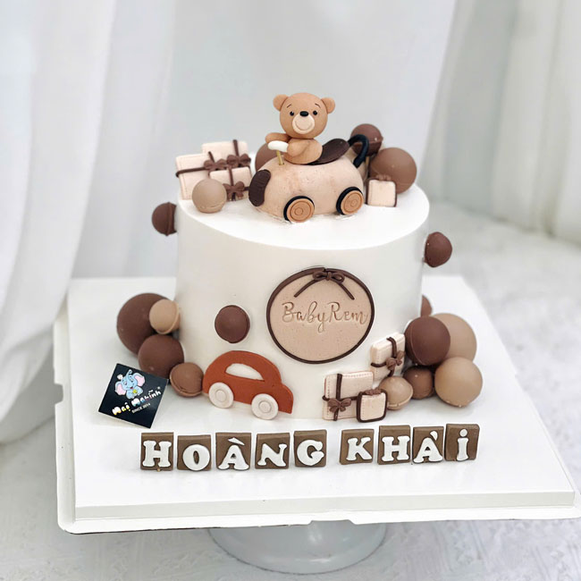 Bánh sinh nhật tạo hình 3d gấu lái xe ngộ nghĩnh đáng yêu tặng bé trai