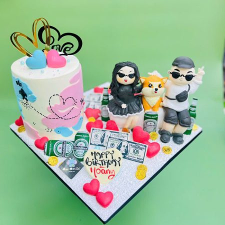 Bánh sinh nhật tạo hình 3d gia đình và chú cún độc đáo đáng yêu tặng nam
