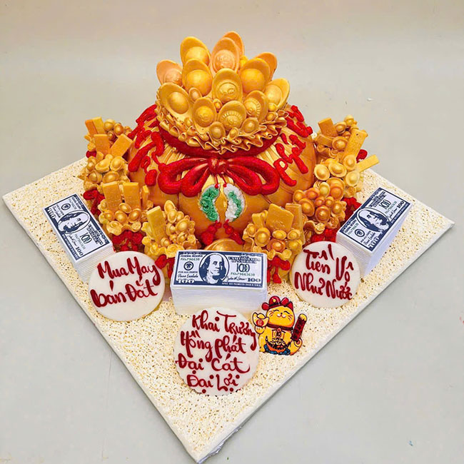 Bánh sinh nhật tạo hình 3d hủ vàng lớn và hủ vàng nhỏ đẹp hoành tráng