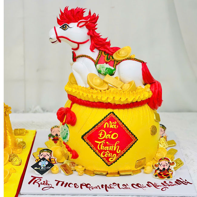 Bánh sinh nhật tạo hình 3d hủ vàng và ngựa đẹp độc đáo mừng năm mới