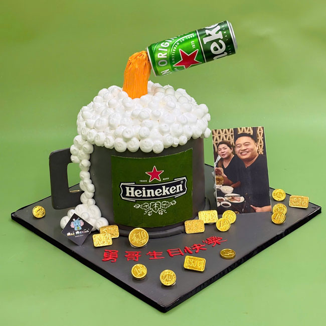 Bánh sinh nhật tạo hình 3d ly bia heineken rót tràn đầy cực dễ thương