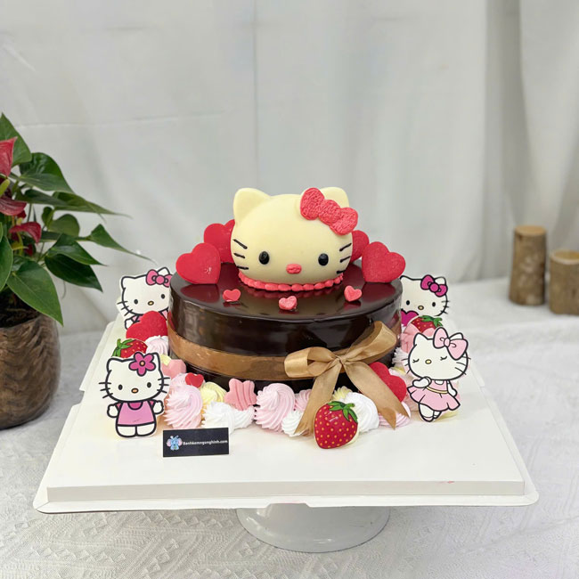 Bánh sinh nhật tạo hình 3d mặt hello kitty nền socola đáng yêu bán chạy