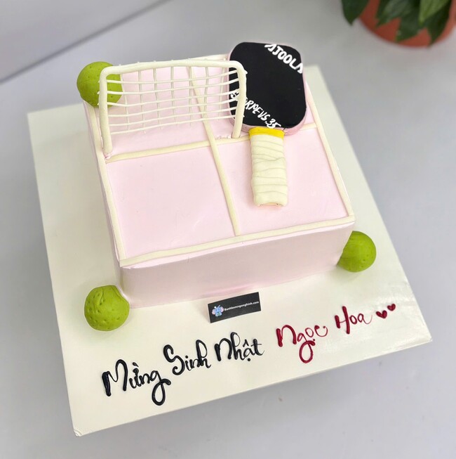 Bánh sinh nhật tạo hình 3d sân và vợt pickleball độc đáo tặng nữ