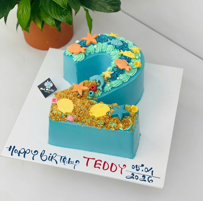 Bánh sinh nhật tạo hình 3d số 2 trang trí cá và sao biển siêu dễ thương
