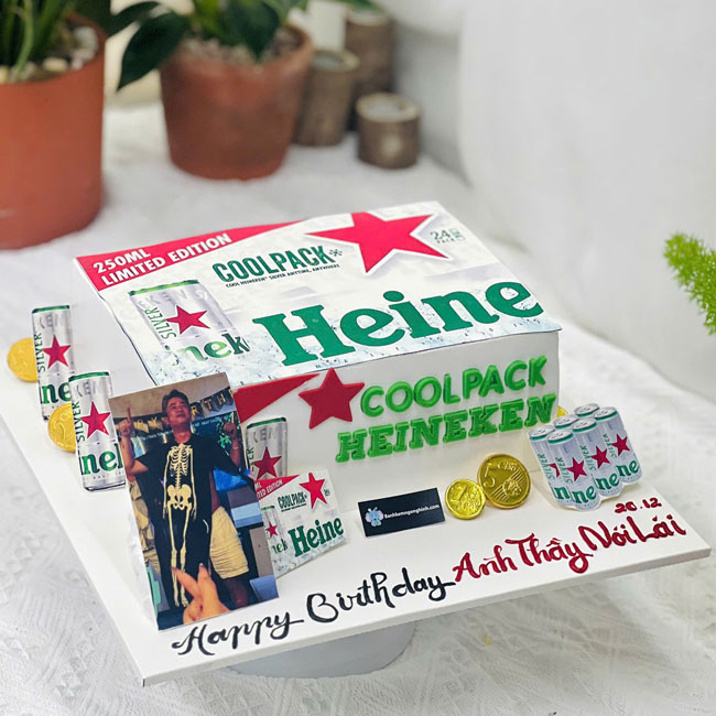 Bánh sinh nhật tạo hình 3d thùng bia heineken bạc đẹp độc đáo tặng Thầy