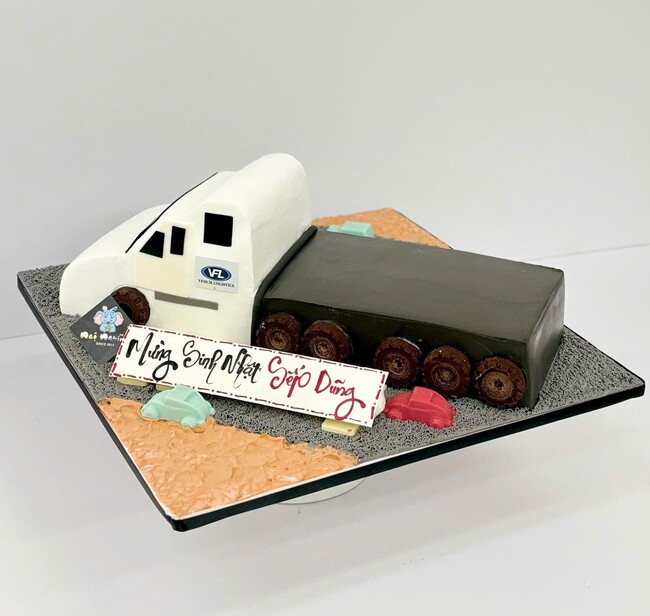 Bánh sinh nhật tạo hình 3d xe container ngộ nghĩnh độc đáo tặng sếp