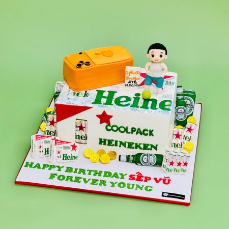 Bánh sinh nhật tạo hình fondant thùng bia và điện thoại iphone độc đáo