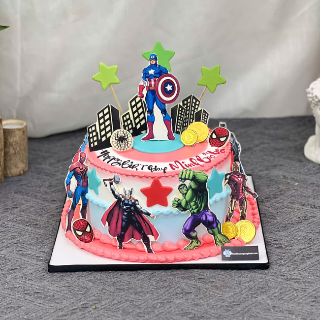 Bánh sinh nhật trang trí ảnh các siêu anh hùng độc đáo tặng bé trai