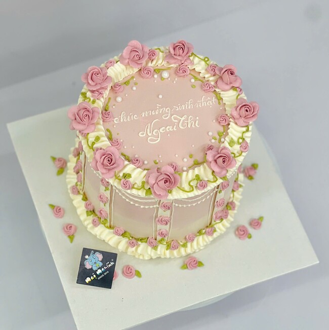 Bánh sinh nhật trang trí hoa hồng xinh xắn đáng yêu tặng ngoại