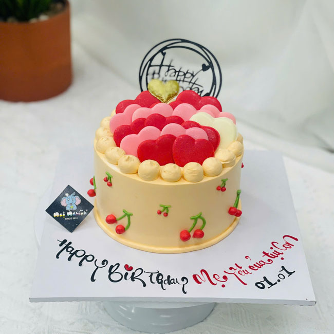 Bánh sinh nhật trang trí tim socola đỏ và hồng siêu dễ thương tặng mẹ