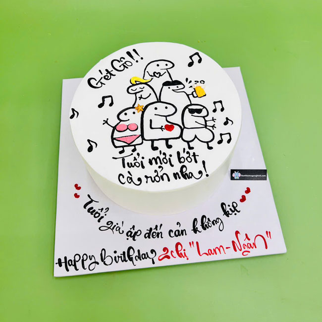 Bánh sinh nhật vẽ hình các chibi thằn lằn đang quẩy siêu dễ thương