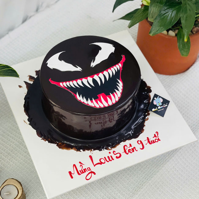 Bánh sinh nhật vẽ hình mặt nhân vật hoạt hình bằng socola nguyên chất
