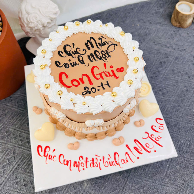 Bánh sinh nhật viết chữ trang trí đơn giản dễ thương tặng con gái
