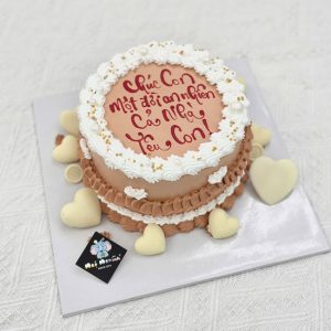 Bánh sinh nhật in hình trái tim ăn được trang trí tim mạ vàng tặng mẹ