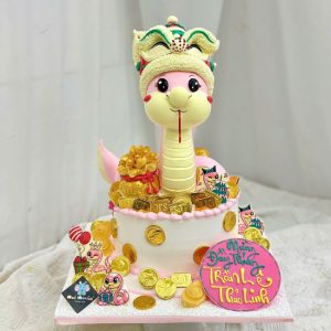 Bánh sinh nhật tạo hình 3d con rắn tuổi tỵ đáng yêu mừng thôi nôi bé