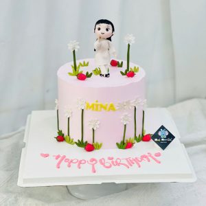 Bánh kem sinh nhật tạo hình cô gái nhỏ và hoa xinh xắn đáng yêu