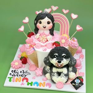 Bánh sinh nhật tạo hình 3d bé gái và cún con siêu dễ thương tặng bé gái