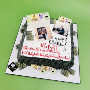 Bánh sinh nhật in hình ăn được và cọc tiền độc đáo tặng nam