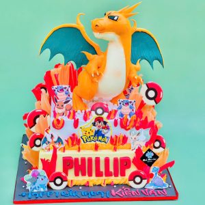 Bánh sinh nhật tạo hình 3d nhân vật Charizard pokemon siêu dễ thương